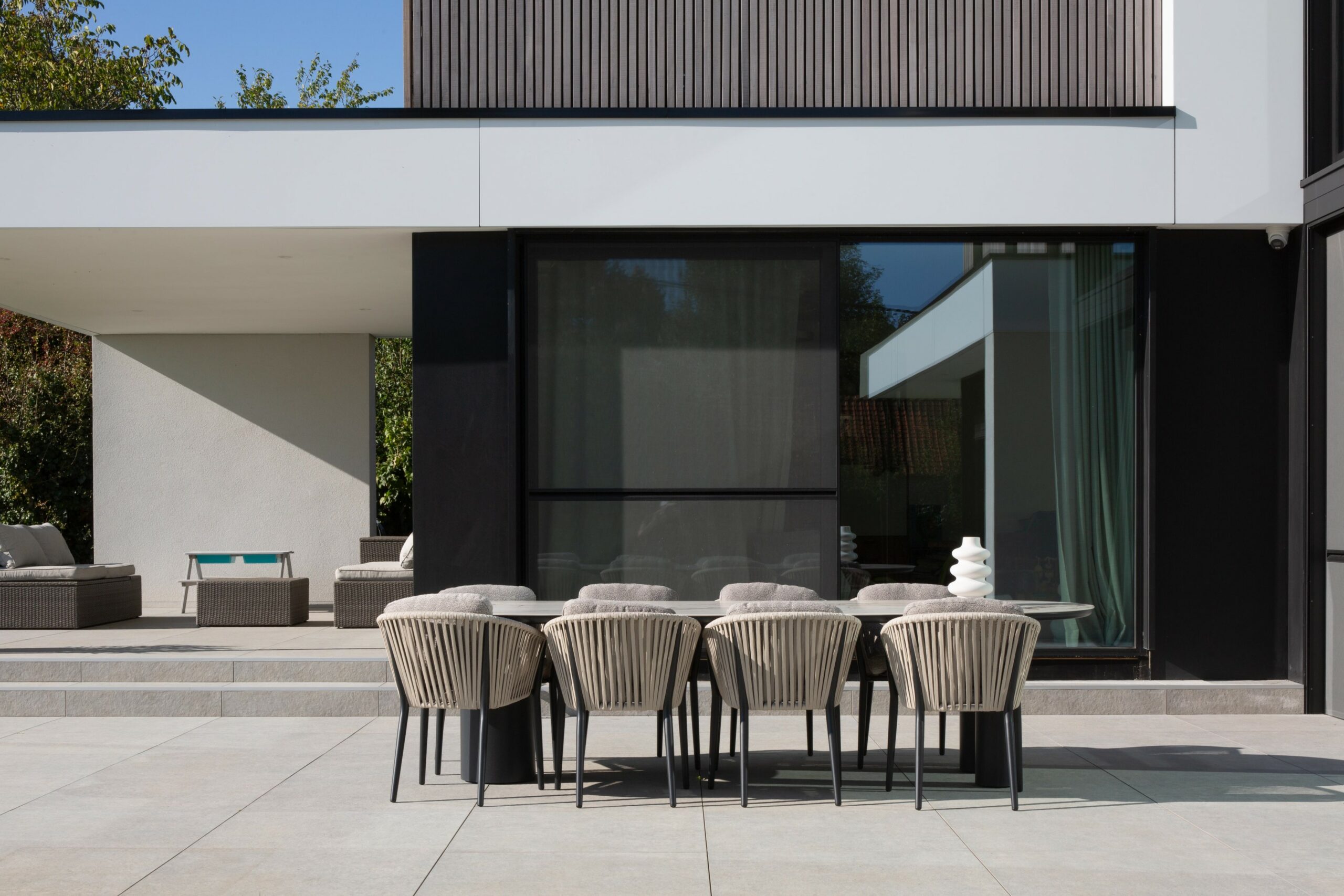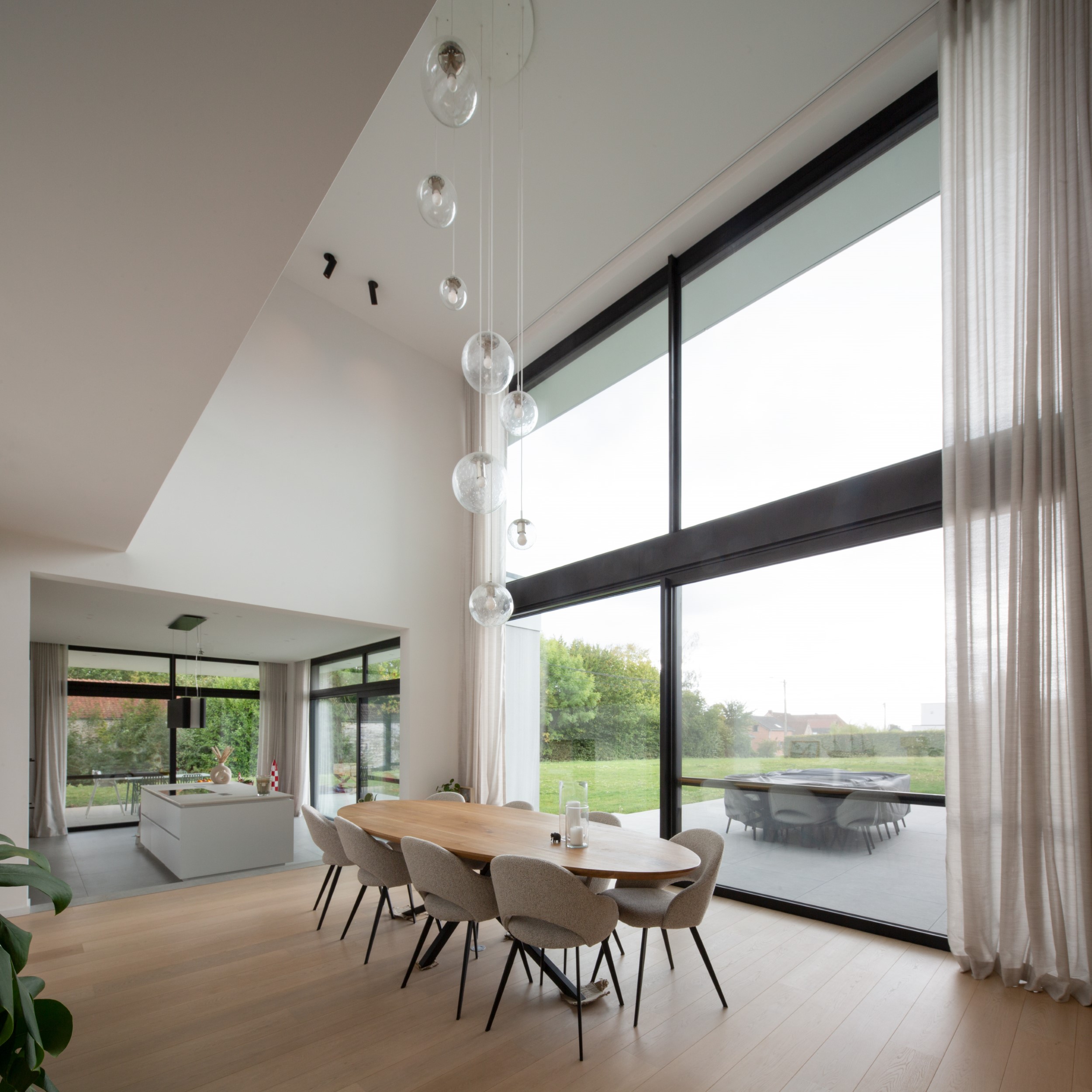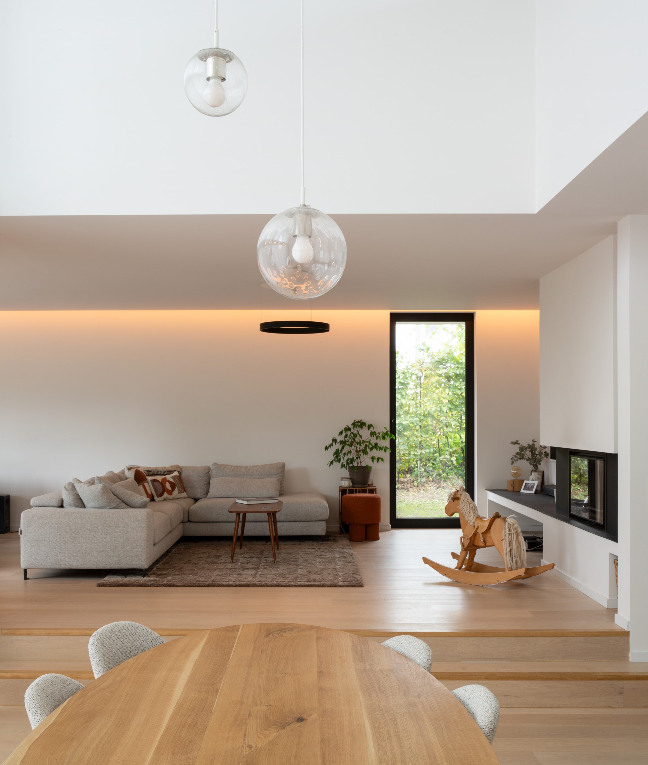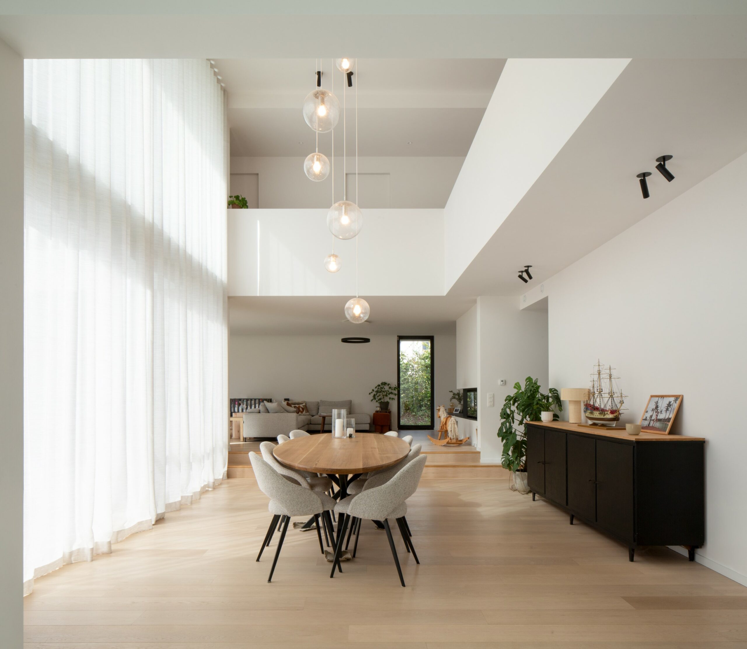 Ce projet s’implante sur une parcelle en légère pente à proximité du centre du village de Temploux. D’une superficie de près de 350m², cette habitation épouse au Rez-de-chaussée les courbes de niveaux par 3 paliers successifs. Un espace terrasse s’articule sur l’arrière du bâtiment laissant l’opportunité de profiter d’un ensoleillement est / Sud-ouest. Les débordement de toiture créent les terrasses couvertes et limitent les surchauffes. L’alliance entre plusieurs matériaux tels que crépis, aluminium et bois thermotraîté et le verre permet d’harmoniser les volumétries.