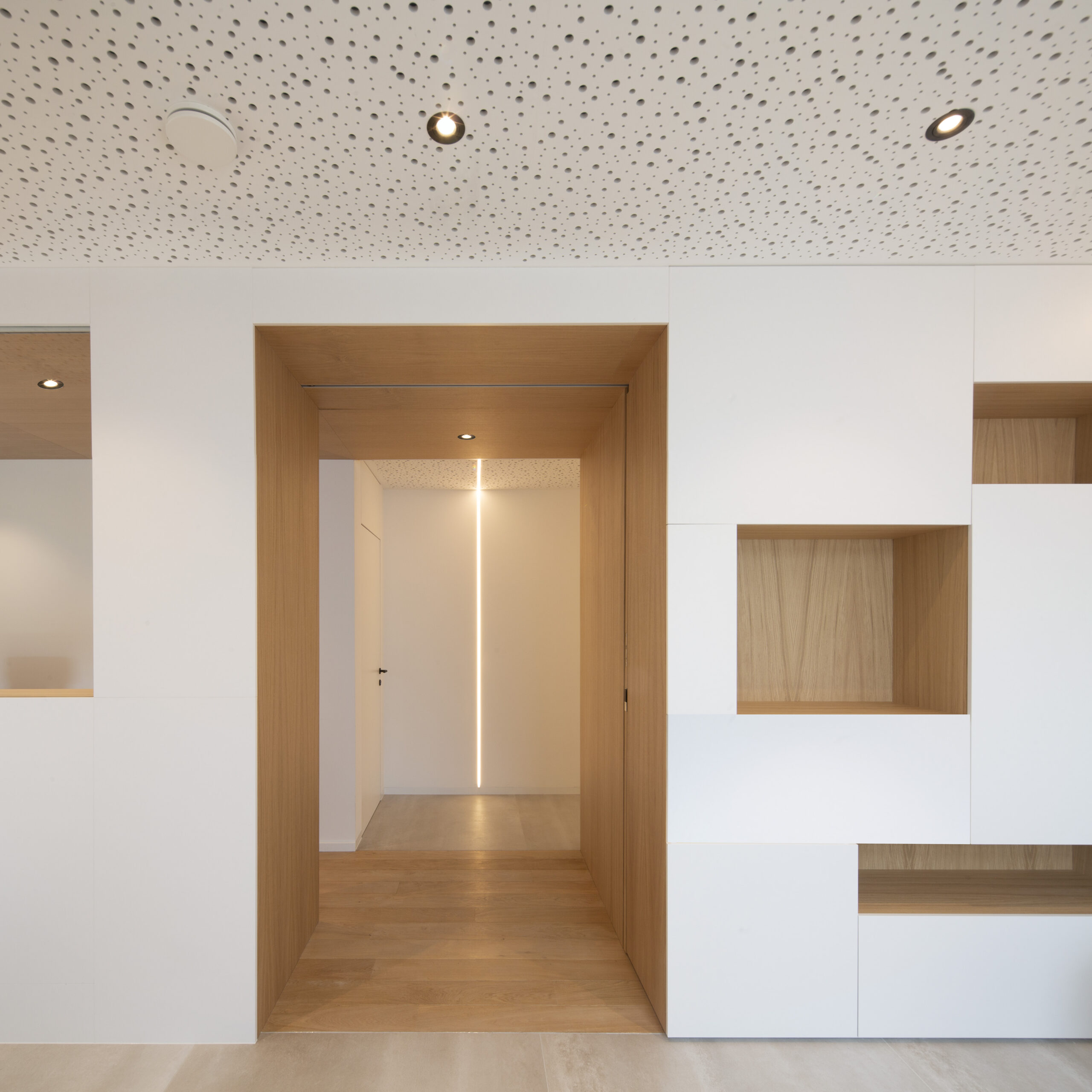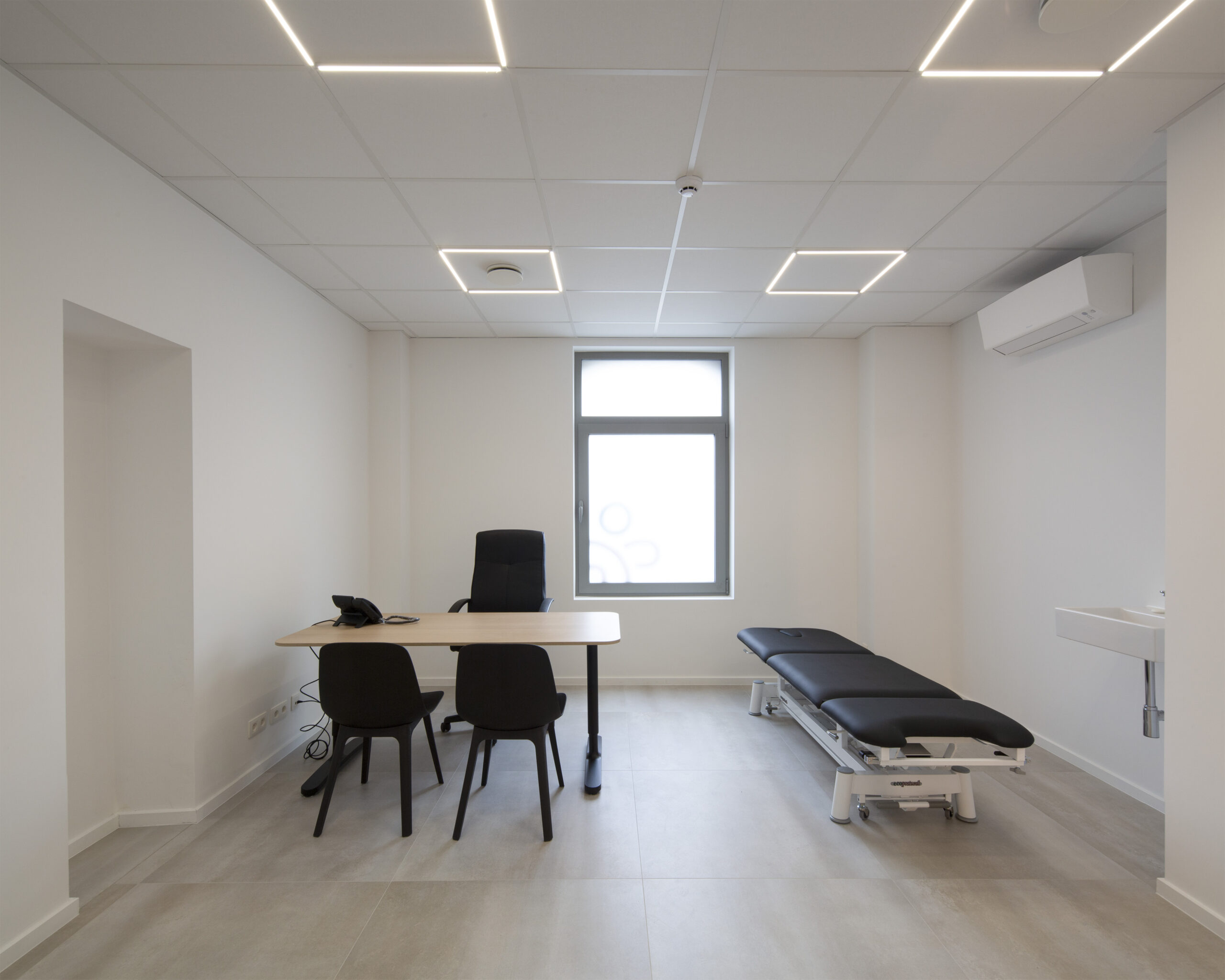 Situé au Rez-de-Chaussée d’un immeuble du centre de Ciney, le projet consiste en un aménagement de +-200m² d’espace médicaux pluridisciplinaires. L’organisation de l’espace a été totalement revu afin de rendre ceux-ci plus fonctionnels. Le programme comprend un espace secrétariat et salle d’attente, 5 cabinets de consultation et un espace cafétaria.