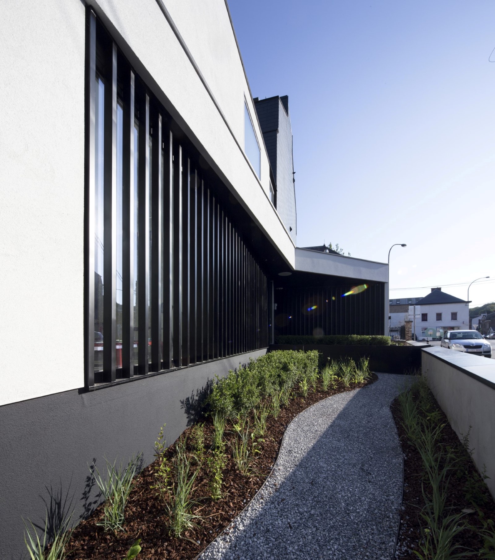 L’ensemble est mis en valeur par un très beau travail des espaces verts extérieurs, signé François Charlier.