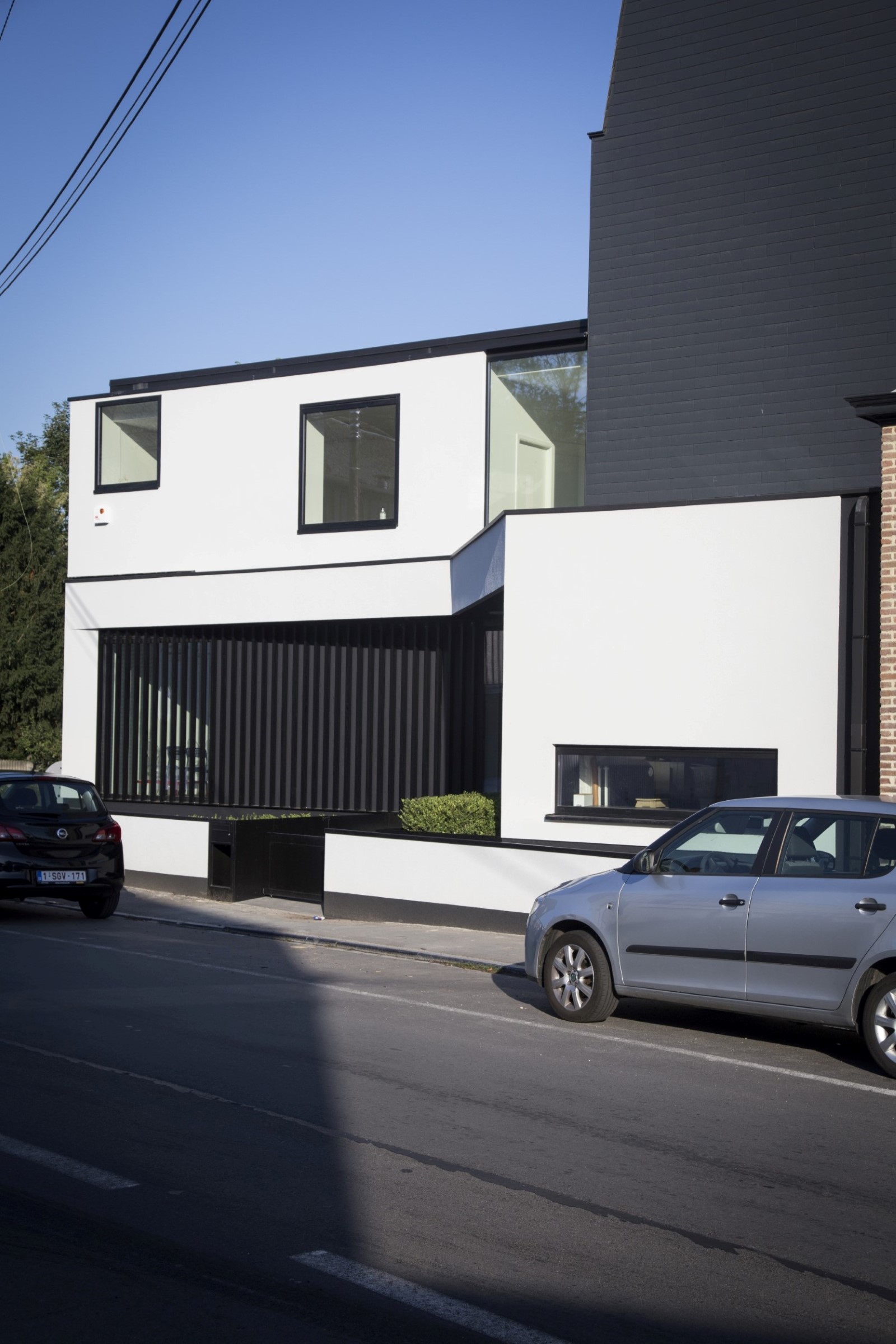Le projet propose un contraste architectural très marqué sur ses deux façades à rue.