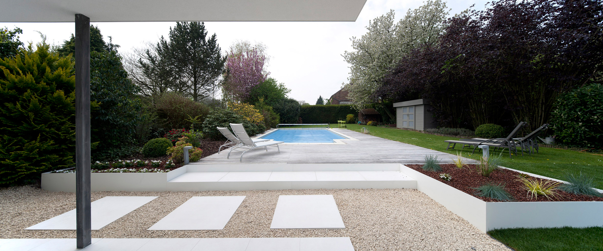 Le choix d’une architecture avec une identité forte est proposée afin de contraster avec l’existant et de donner un visage nouveau, plus contemporain, à la partie jardin en dialogue avec la terrasse et la piscine. Une grande attention a été apportée à l’aspect énergétique, et un soin tout particulier aux détails de finition.